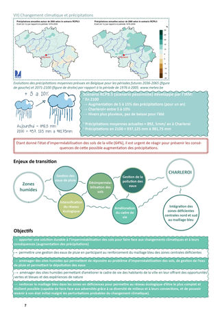 L'état d’artificialisation des sols de la commune de Charleroi est problématique dans un contexte de changements climatiques (augmentation des précipitations, infiltration des sols, ruissellements, érosions, inondations, ...).